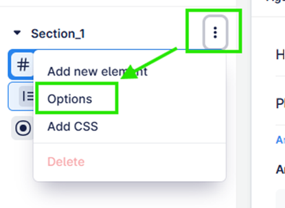 When you hover over the name of the section, you will see three dots. Select options.