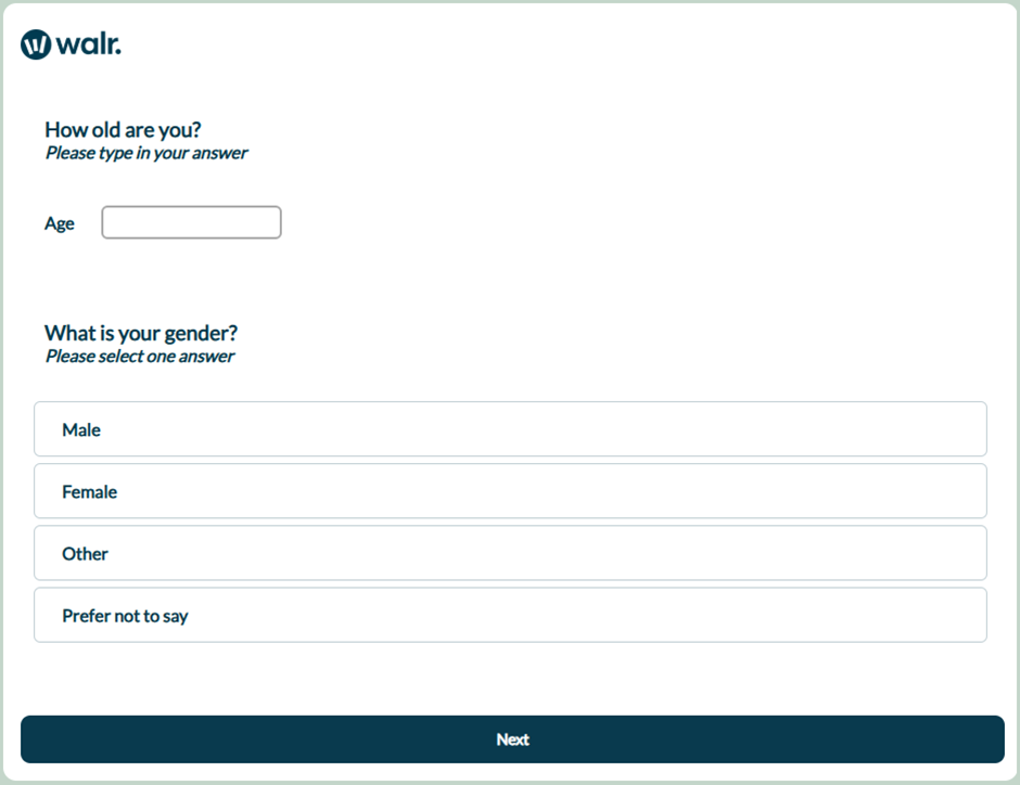 In some cases you may want to show multiple questions on the same page, for example when asking questions such as age and gender.